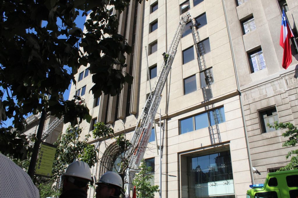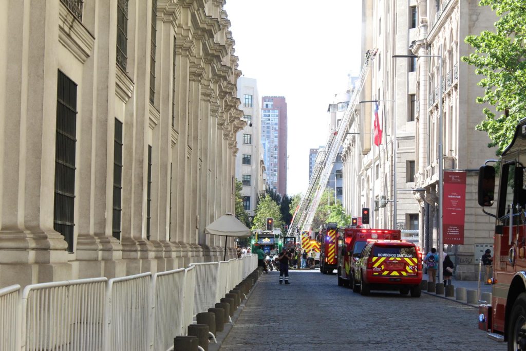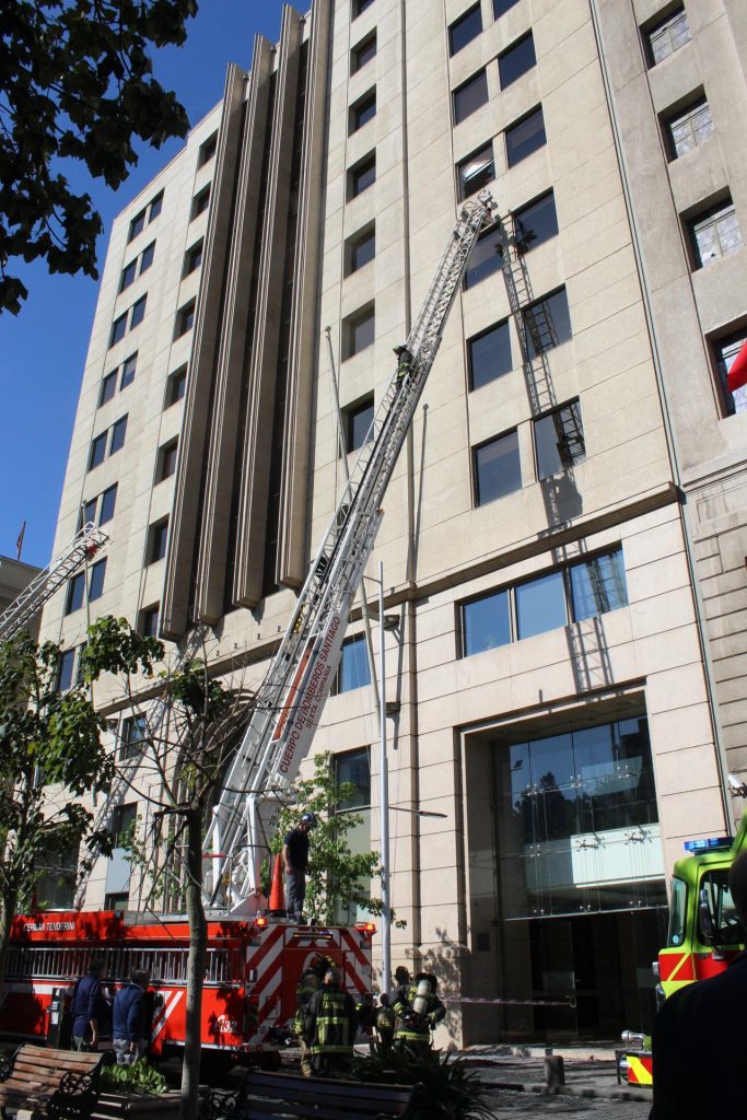 Con Alarma de Incendio, gran emanación de humo y la evacuación de al menos 300 personas actuó el martes 7 de octubre el Cuerpo de Bomberos de Santiago (CBS) cuando se activó la emergencia en un edificio signado con el N° 115 de Morandé, contiguo al Ministerio de Justicia, con el N° 106, a pasos del Palacio de La Moneda.