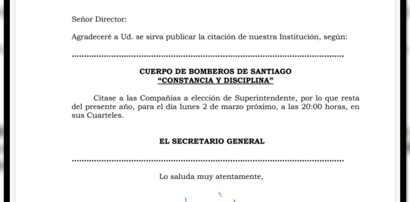 Se produjo en Sesión Extraordinaria del Directorio institucional, el 25 de febrero. El Directorio del Cuerpo de Bomberos de Santiago (CBS), reunido, el 25 de febrero, en Sesión Extraordinaria, aceptó la renuncia al cargo de Superintendente presentada por el Voluntario