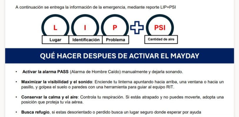El documento aborda de manera práctica cuándo y cómo declarar la señal internacional de solicitud de ayuda utilizada en situaciones de riesgo vital. El Departamento de Operaciones de Rescate de la Comandancia distribuyó a todas las Compañías la Guía de