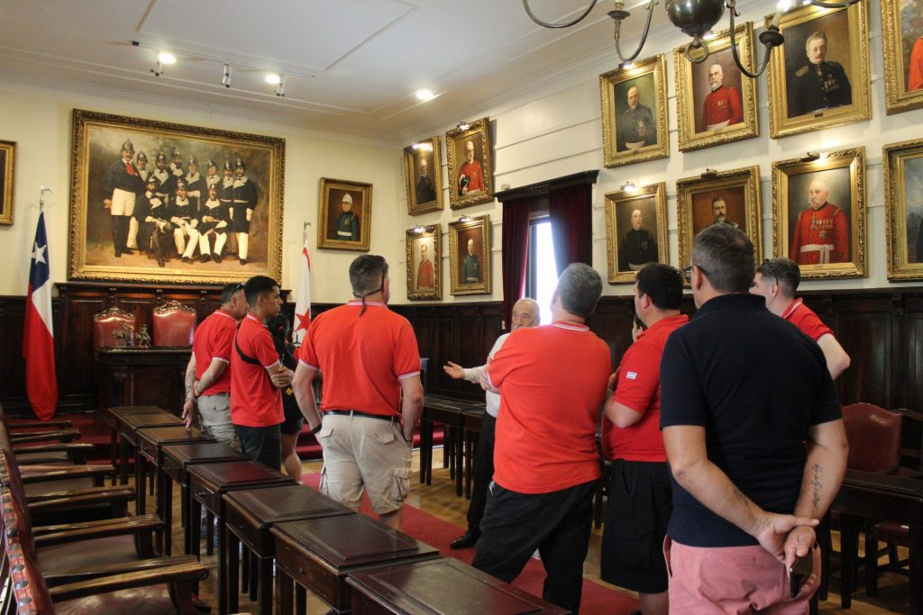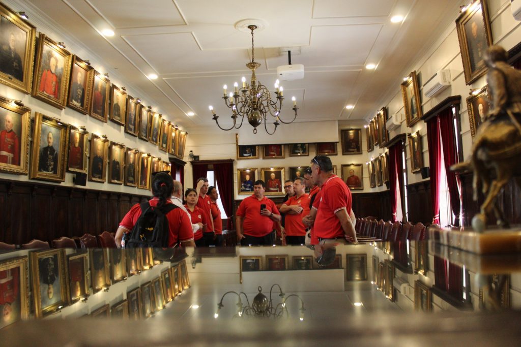 La delegación fue recibida por el Inspector de Administración Manuel Pérez Hidalgo, quien les ofreció un recorrido guiado por las dependencias del recinto, narrando la historia y significado que las salas, cuadros y colecciones tienen para el CBS.