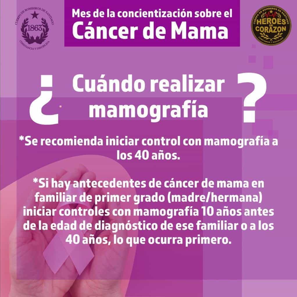 El viernes 14 de octubre, el Departamento de Salud Preventiva del Cuerpo de Bomberos de Santiago (CBS) dio inicio a una serie de publicaciones acerca del Mes de Concientización sobre el Cáncer de Mama.