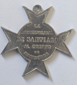 La pieza histórica, otorgada por la Ilustre Municipalidad de Santiago, en junio de 1880, a todos los voluntarios y auxiliares que concurrieron a la emergencia, que sin la intervención de los Bomberos de Santiago hubiese afectado gravemente a la ciudad y amenazado el curso de la guerra.