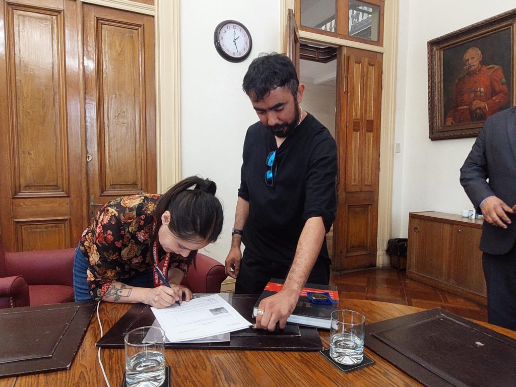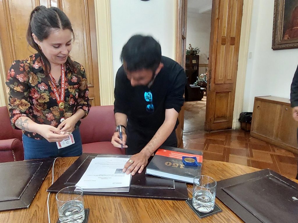 La donación de la medalla la hizo el arqueólogo Diego Ríos al MuBo, en presencia del Superintendente, Gabriel Huerta Torres, quien estuvo acompañado por el Voluntario Honorario de la 3ª Compañía Max Echeverría Bertolone y la Conservadora del Museo de Bomberos de Santiago (MuBo), Natalie Ortiz.