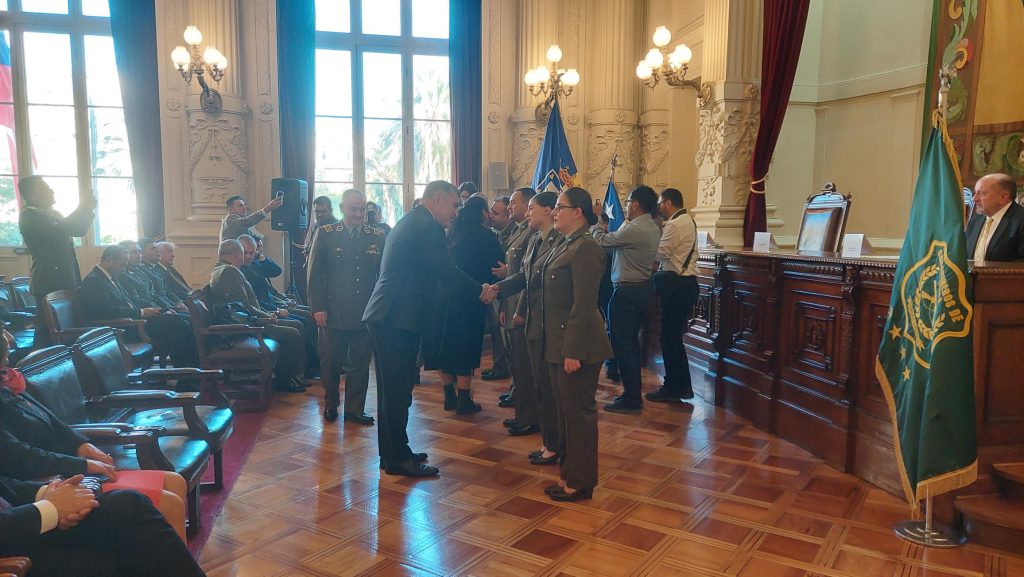 Delito, Ana Victoria Quintana Olguín, y el General Director de Carabineros, Marcelo Araya Zapata, junto a concejales entregaron las condecoraciones a los policías uniformados.