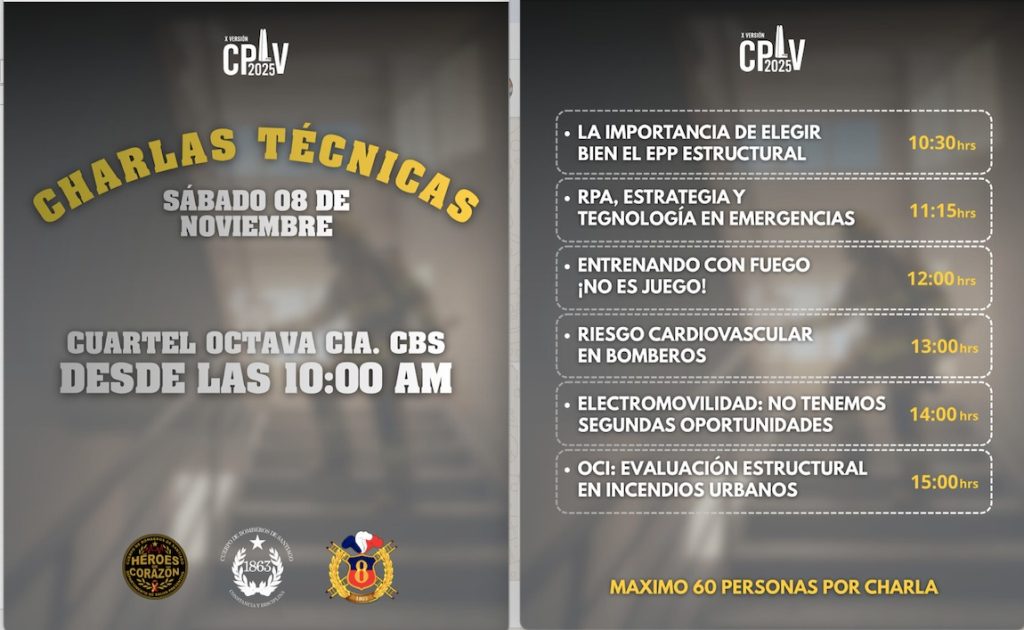 El sábado 8 de noviembre, en el marco de la 10ª versión de Corremos por la Vida, se ofrecerán charlas técnicas en el cuartel de la 8ª Compañía “La Unión es Fuerza”, del Cuerpo de Bomberos de Santiago (CBS).