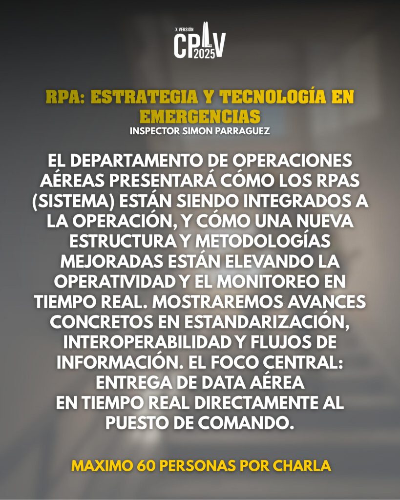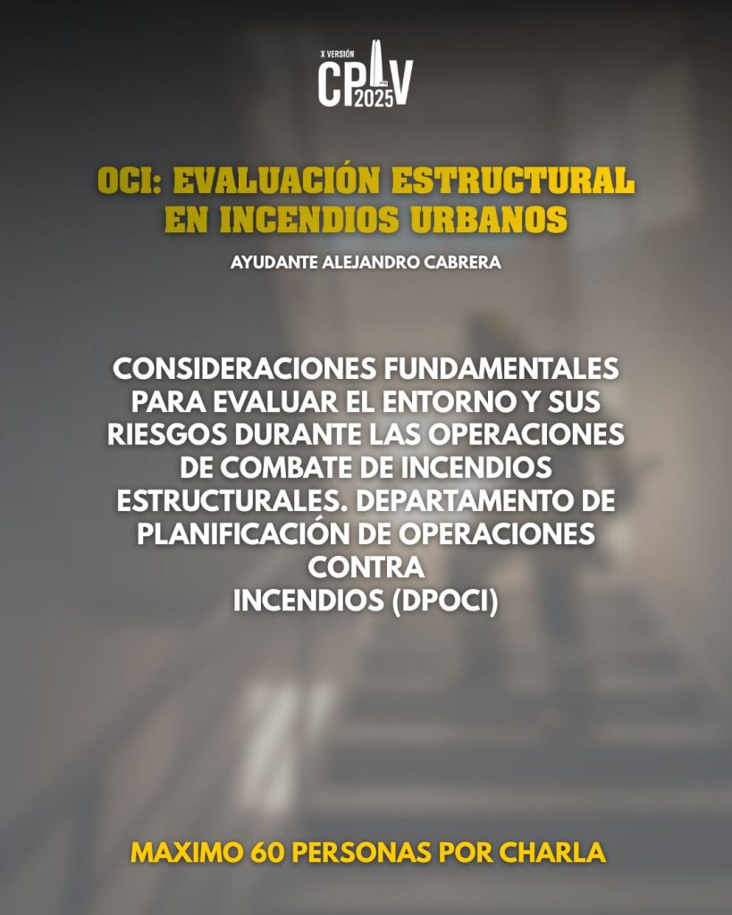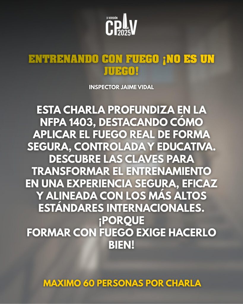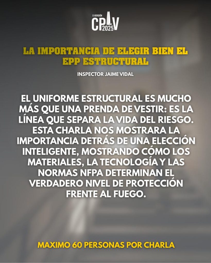 Se trata de seis charlas de aproximadamente 45 minutos, las que comienzan a las 10:30 y finalizan a las 15:45 horas y que tratan desde protección personal hasta estrategias operativas en incendios.