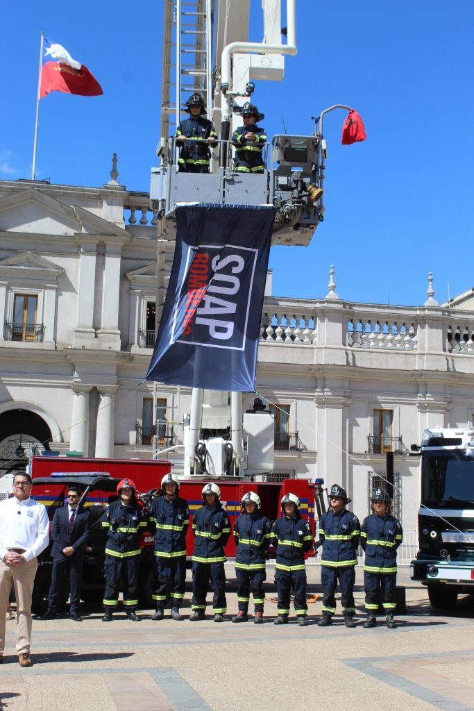 El Cuerpo de Bomberos de Santiago (CBS) participó en el lanzamiento de la Campaña SOAPBOMBEROS 2026, que se realizó el lunes 2 de marzo, en la Plaza de la Constitución, frente al Palacio de La Moneda.