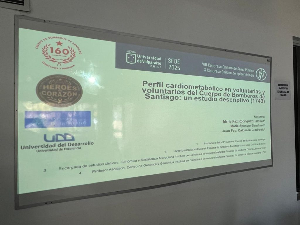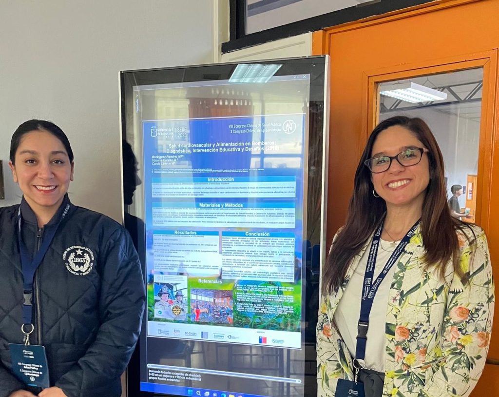 En el marco del VIII Congreso Chileno de Salud Pública y X Congreso Chileno de Epidemiología, realizado en la Universidad de Valparaíso, entre el 20 y 22 de noviembre, el Cuerpo de Bomberos de Santiago (CBS) presentó los trabajos “Salud Cardiovascular en Bomberos: Diagnóstico, Intervención Educativa y Desafíos” y “Perfil Cardiometabólico en Voluntarias y Voluntarios del Cuerpo de Bomberos de Santiago”.