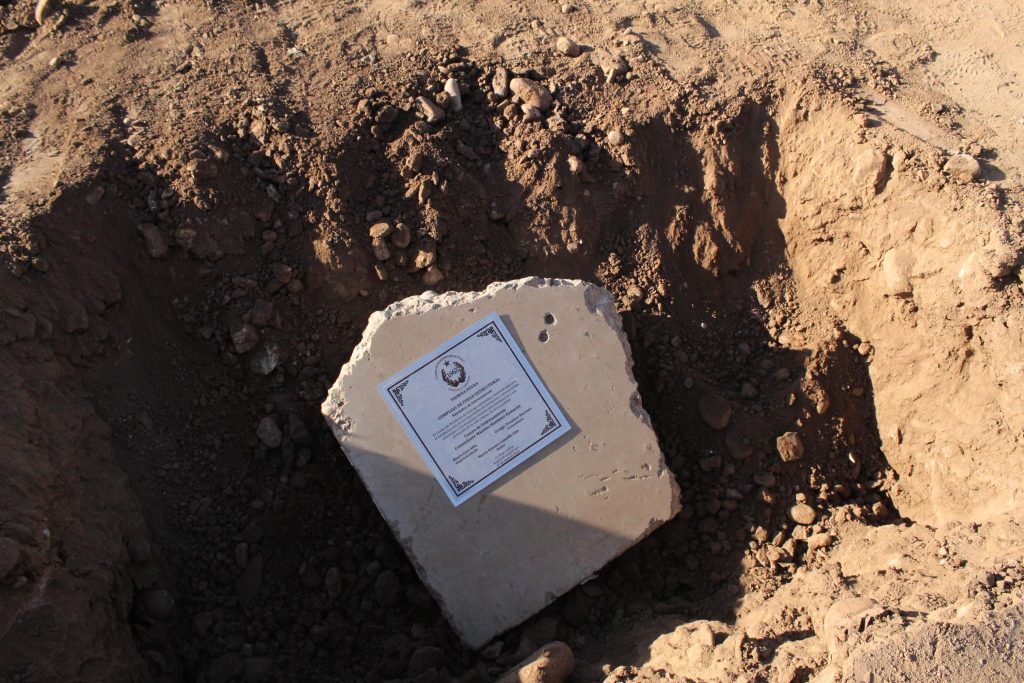 Con la máquina BM-20, portando la bandera chilena; la Q-7, teniendo en su telescópica la del Cuerpo y el carro RH-6 sujetando la primera piedra sobre la fosa donde se depositaria la primera piedra, se inició la actividad.