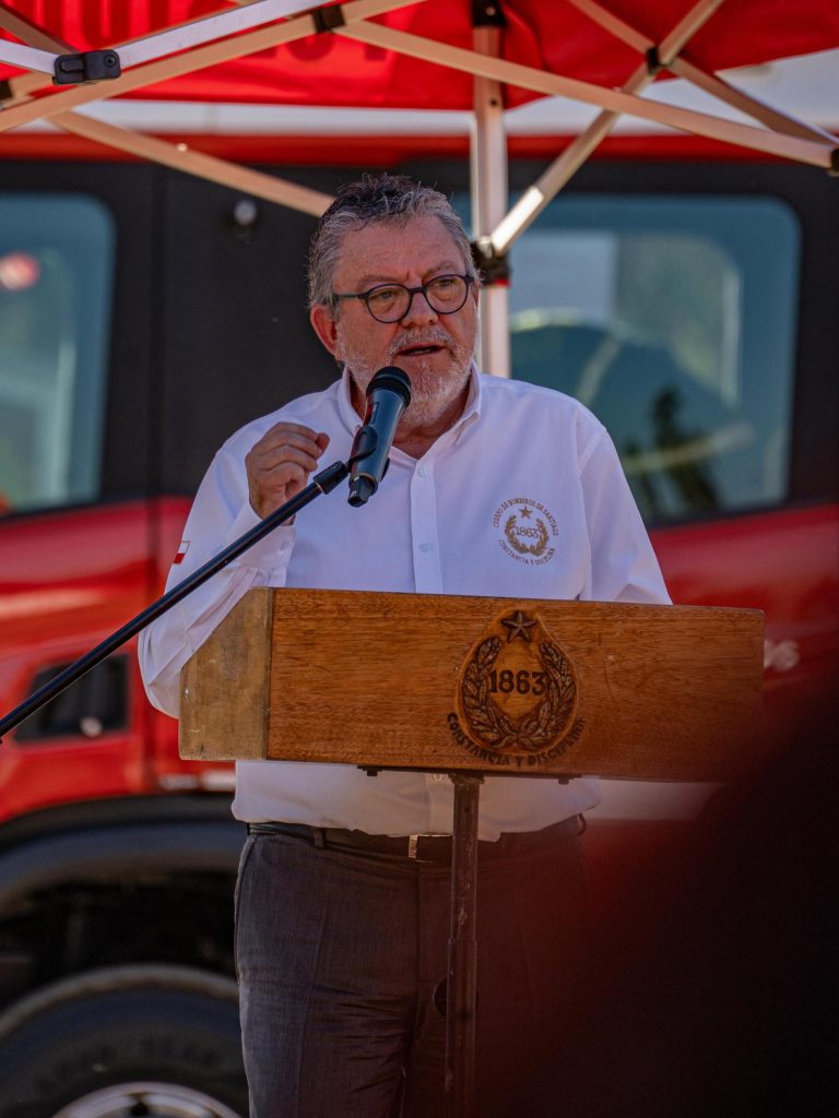 A su vez, el segundo orador fue el Comandante, Giorgio Tromben Marcone, quien manifestó que “este espacio que comenzamos a construir representa mucho más que infraestructura. Representa una visión. Una visión donde la capacitación deja de ser un complemento y se convierte en el pilar fundamental de nuestro quehacer. Porque sabemos que enfrentar el fuego, las emergencias y el riesgo exige algo más que voluntad: exige conocimiento, entrenamiento riguroso y preparación constante”.
