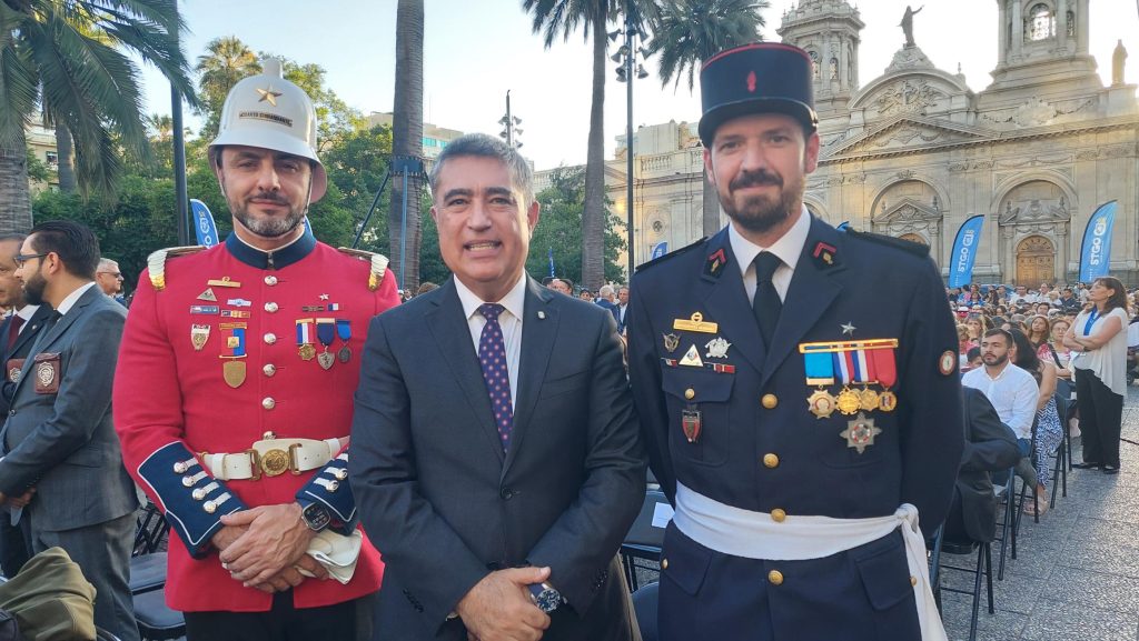 El Cuerpo de Bomberos de Santiago (CBS) se hizo presente en la ceremonia conmemorativa por los 485 años de la fundación de Santiago, celebrada la tarde del 12 de febrero, en la Plaza de Armas de la ciudad