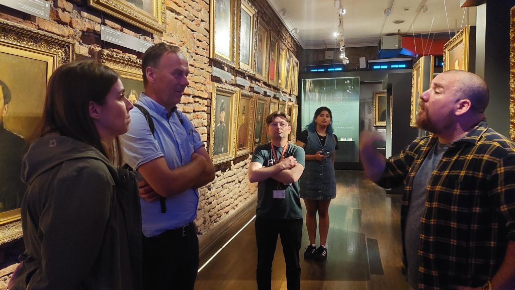 Los visitantes consultaron detalles de cómo se desarrolló la obra y qué historia tiene cada dependencia del Cuartel General por las que los voluntarios Velasco y Yáñez los conducían: conocieron el ala de Comandancia con las oficinas de los Comandantes, Capitán de Guardia, salas administrativas, de la Peña de los 50 Años; el ala de Superintendencia, como la del Superintendente, Vicesuperintendente, Secretario General, Tesorero General y del Consejo de Oficiales Generales.