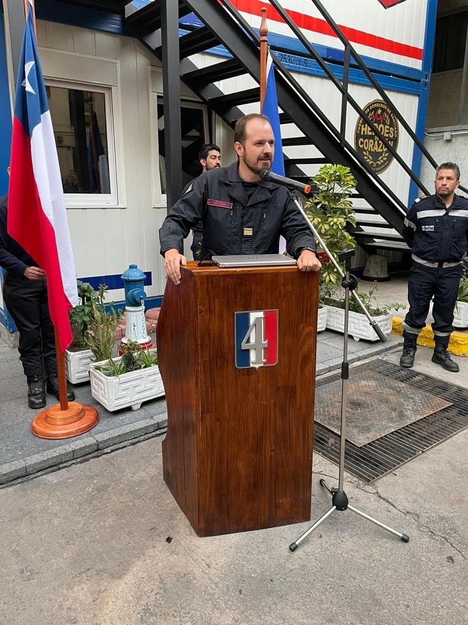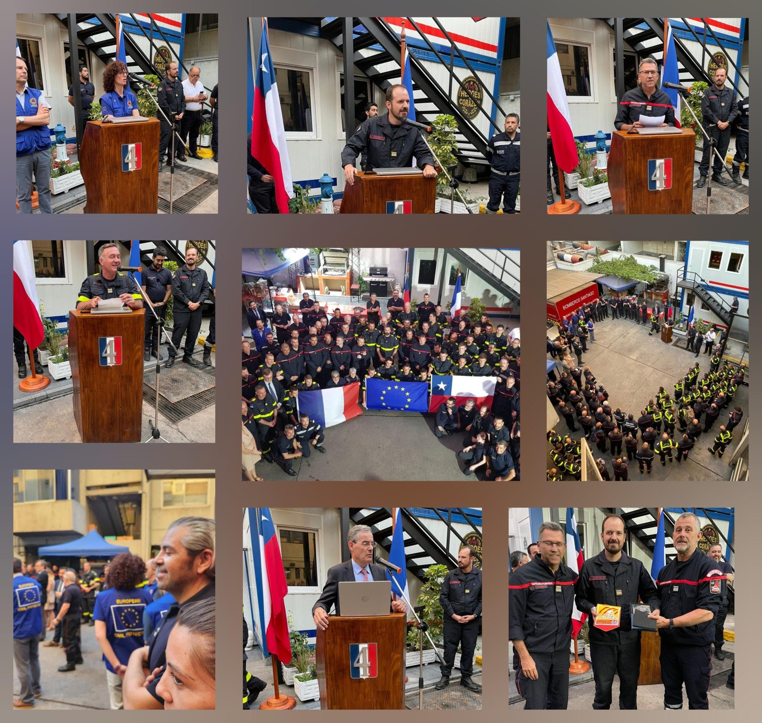 En la oportunidad hubo discursos de parte del Embajador de Francia en Chile, Pascal Texeira da Silva; de los Jefes de los respectivos destacamentos de Bomberos Franceses; de la líder del Equipo de Coordinación de la UE, y del Director de la Cuarta Compañía, Alonso Segeur Lara.