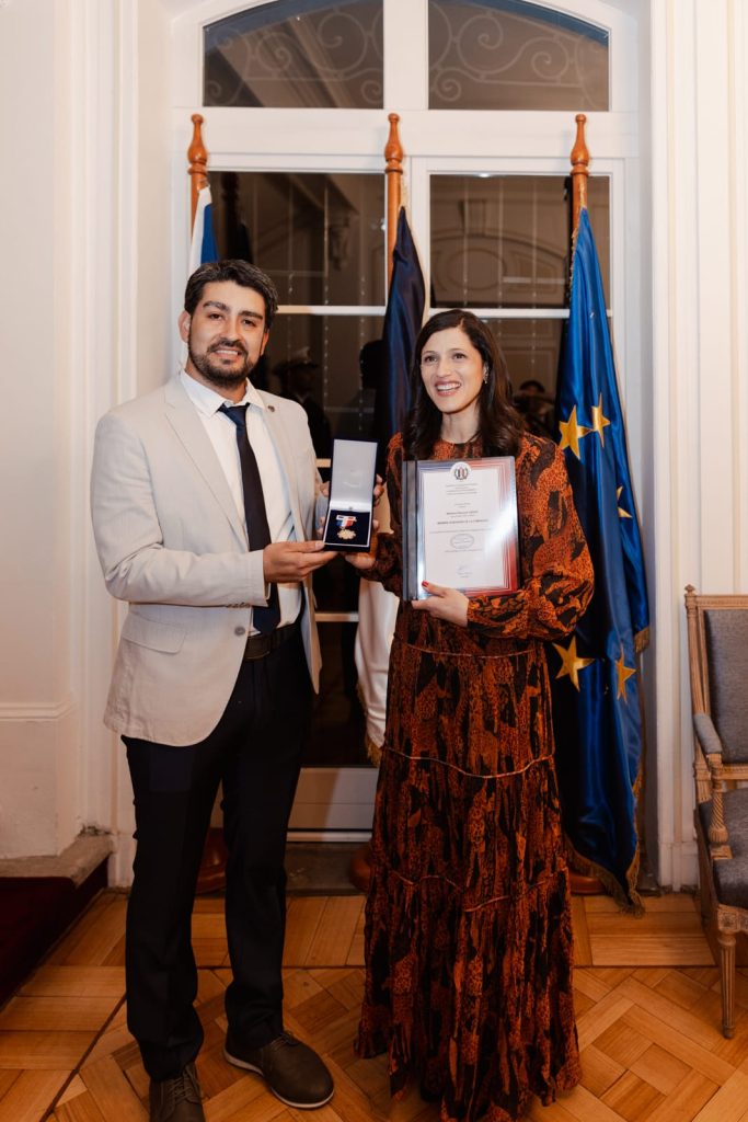 El pasado 10 de marzo, con motivo de su visita oficial a Chile, la Pompe France hizo entrega de la Medalla de Miembro Honorario a la Ministra delegada encargada de la Francofonía, de las Alianzas Internacionales y de los Franceses en el Extranjero, Éléonore Caroit, por su constante apoyo y su apego a la Compañía.