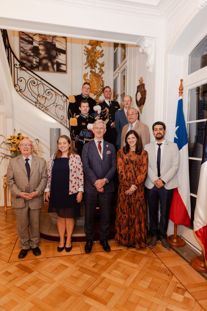 La ceremonia simbólica, que incluyó la entrega del libro de los 160 años del CBS, tuvo lugar en la Residencia de Francia, contando con la presencia del Cyrille Rogeau, Embajador de Francia en Chile; Véronique Barbereau, Cónsul; y Numa Durbec, Agregado de Defensa.