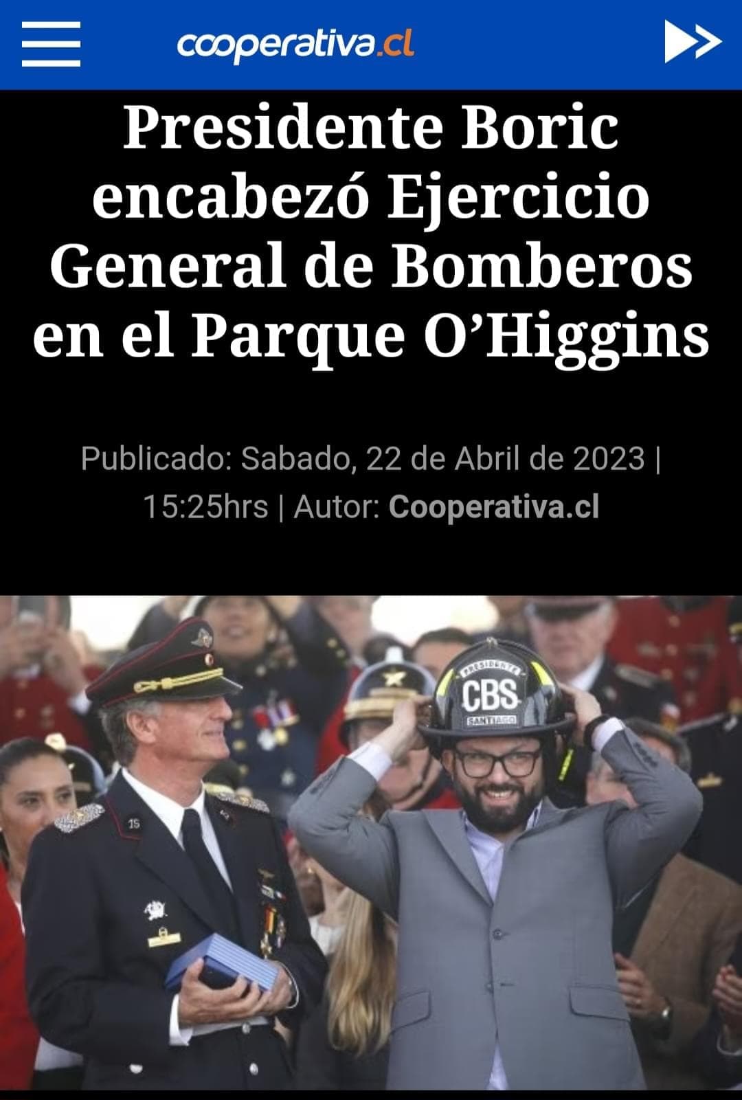 Así lo testimonian emisiones de canales como Televisión Nacional de Chile (TVN) y CNN-Chile, que cubrieron la actividad bomberil desplegada en la Elipse del Parque O’Higgins.