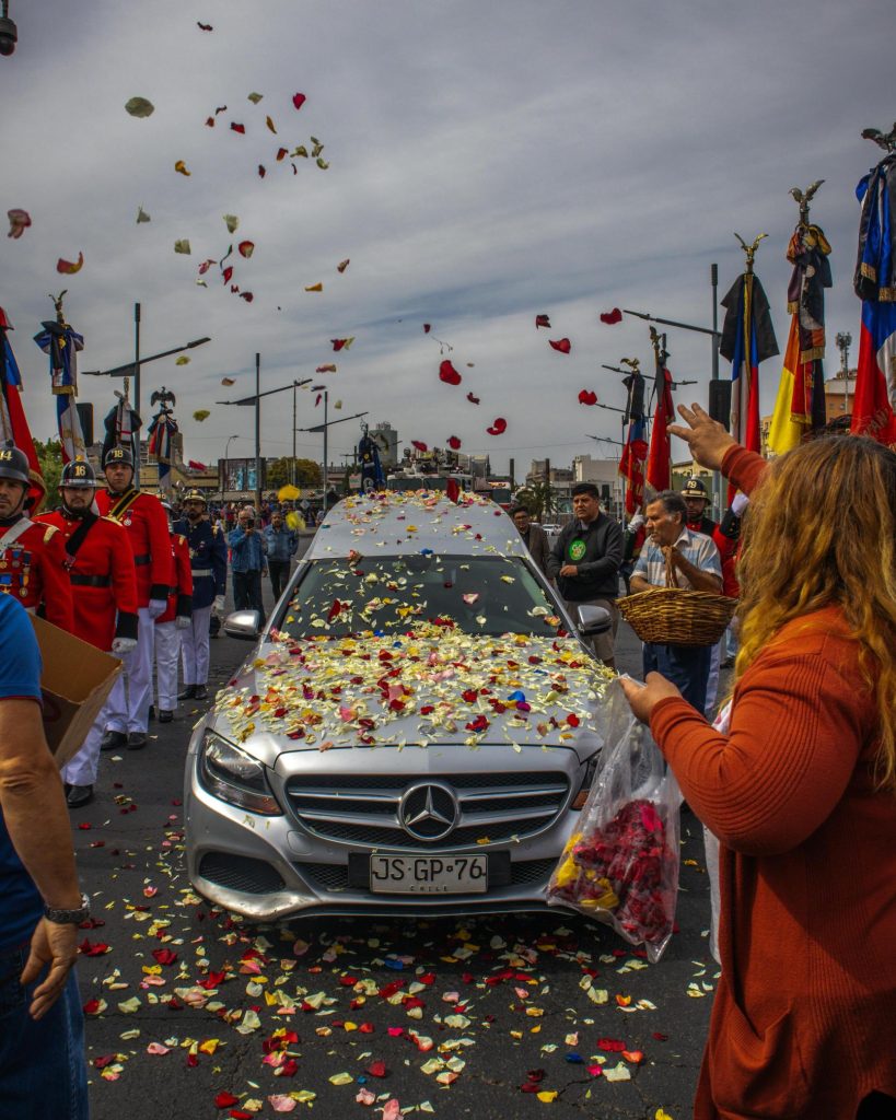 Llegado el momento, el vehículo fúnebre recibió una lluvia de miles pétalos a lo largo de 50 metros en medio de aplausos y vivas de los curiosos. Después del homenaje florido, la carroza y los sextinos, acompañados de sus máquinas, siguieron al desfile por Avenida La Paz al Cementerio General, trayecto flanqueado por en esos momentos innumerables delegaciones de Cuerpos de Bomberos, que viajaron cientos de kilómetros para despedir a un camarada del deber, a un joven Mártir: Paul Cristoffer Valenzuela Muñoz, de la 6ª Compañía “Salvadores y Guardia de Propiedad”.