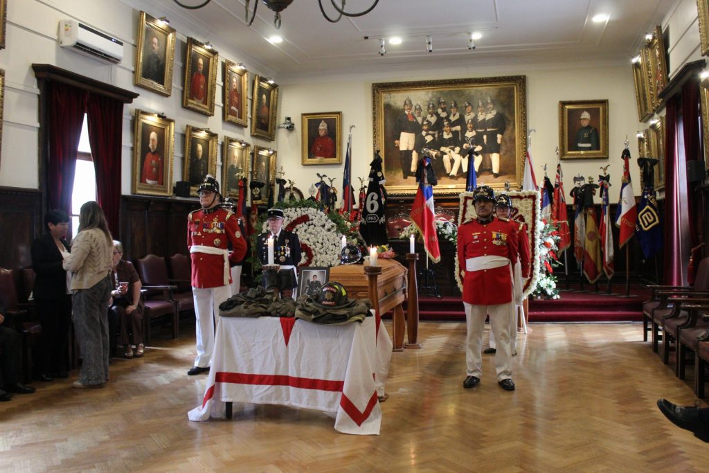 A los costados, las sillas para el núcleo familiar, esposa, hijos, madre, tíos, primos, los que lo vieron crecer; también Voluntarios Honorarios, voluntarios activos, compañeros “sextinos”, Guardias de Honor de Oficiales Generales del CBS, de miembros del Directorio, de Miembros Honorarios, Oficiales de Compañías, autoridades de instituciones bomberiles nacionales y regionales.
