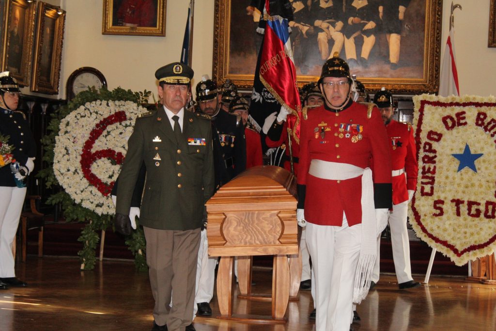 A las 09:45 ingresaron las autoridades bomberiles encargadas de sacar el ataúd, encabezadas por el Superintendente, Gabriel Huerta Torres; el Comandante, Giorgio Tromben Marcone; el Director de la 6ª Compañía, Mario Fernández Batuone, y el Presidente Nacional de la Junta Nacional de Cuerpos de Bomberos de Chile, Juan Carlos Field Bravo.