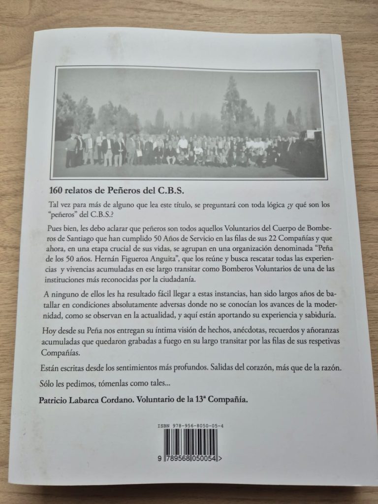 El sábado 25 de abril, en la víspera de su 54° aniversario de fundación, la Peña de los 50 Años «Hernán Figueroa Anguita», del Cuerpo de Bomberos de Santiago (CBS), cedió a la Institución los derechos de autor del libro “Vivencias Bomberiles” con los relatos de 72 de sus integrantes.
