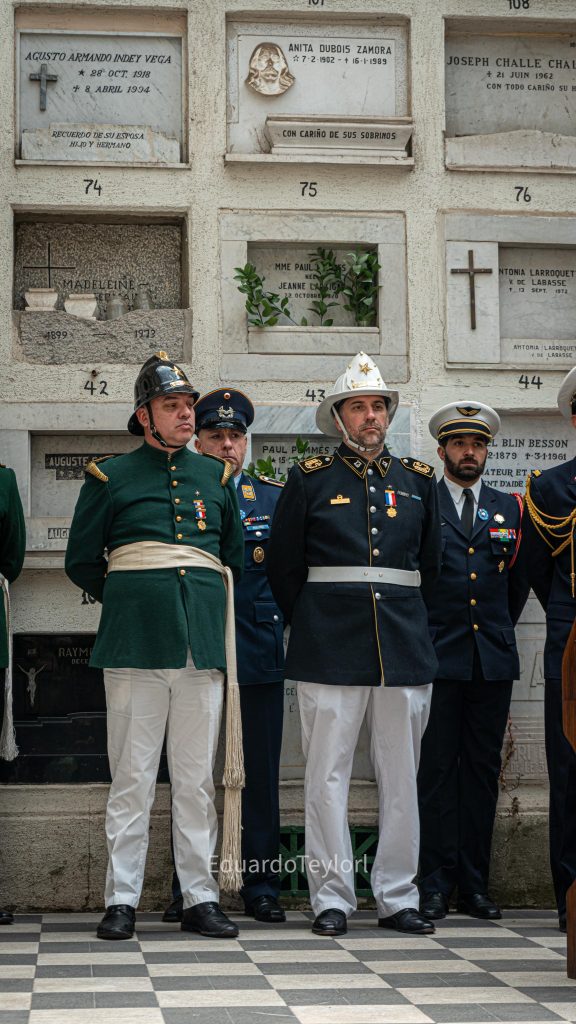 Agregó que “junto a las autoridades francesas en Chile, visitamos el Mausoleo Francés, reafirmando nuestro compromiso con la memoria, el deber y la tradición”.