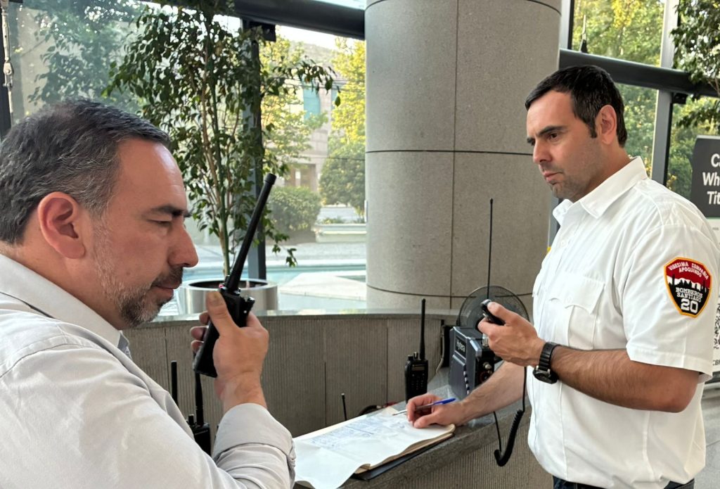 Para tener una respuesta eficiente y segura ante emergencias en escenarios complejos, como edificios de gran altura, el Cuerpo de Bomberos de Santiago (CBS) probó diversos sistemas de telecomunicaciones en la Torre Titanium, en la comuna de Las Condes.