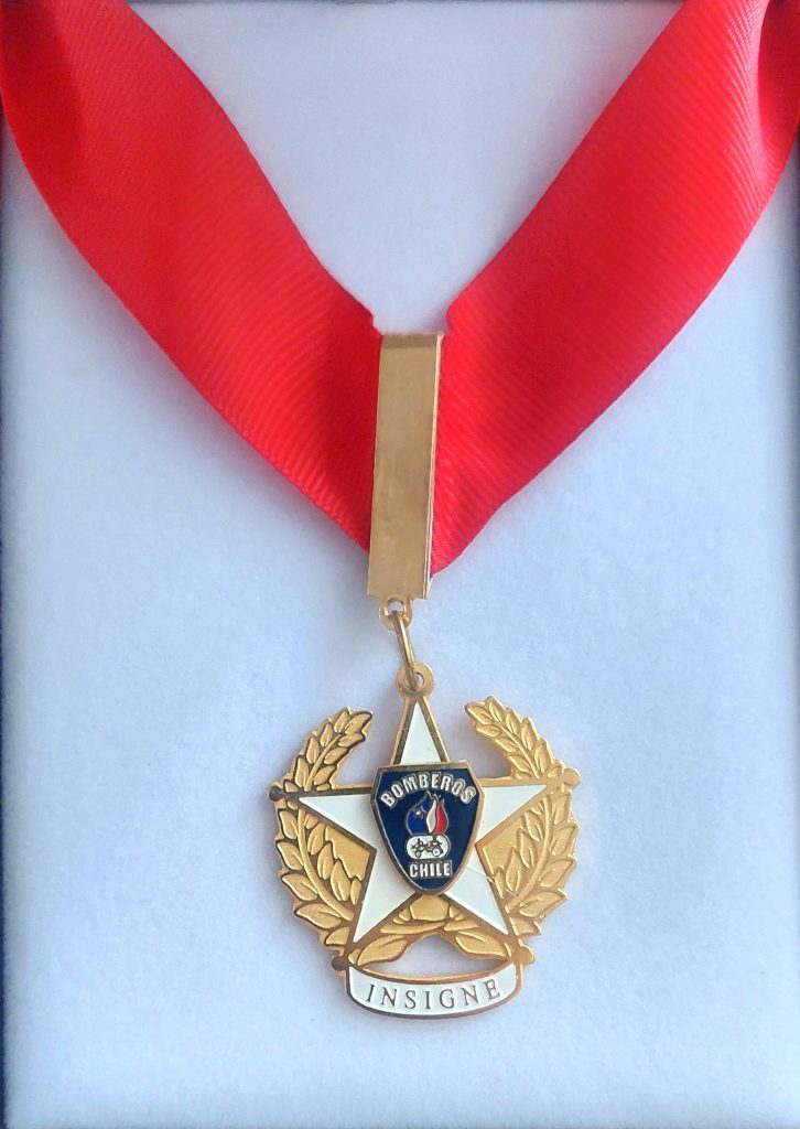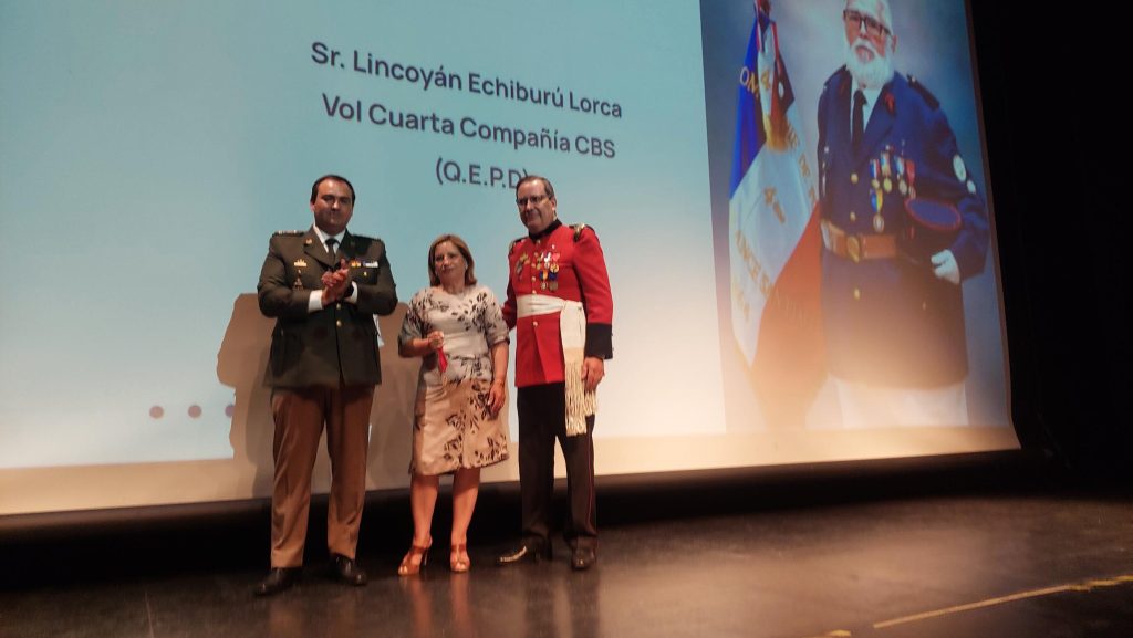 Un acápite especial y emotivo se vivió cuando el Superintendente Gabriel Huerta acompañó a Maya Luisa Barahona Bascuñán, viuda del Miembro Honorario del CBS y Voluntario Honorario de la 4ª Compañía «Pompe France», Lincoyán Echiburú Lorca, para recibir de manos de Presidente de la JNCB y del CRMB la distinción póstuma de Bombero Insigne.