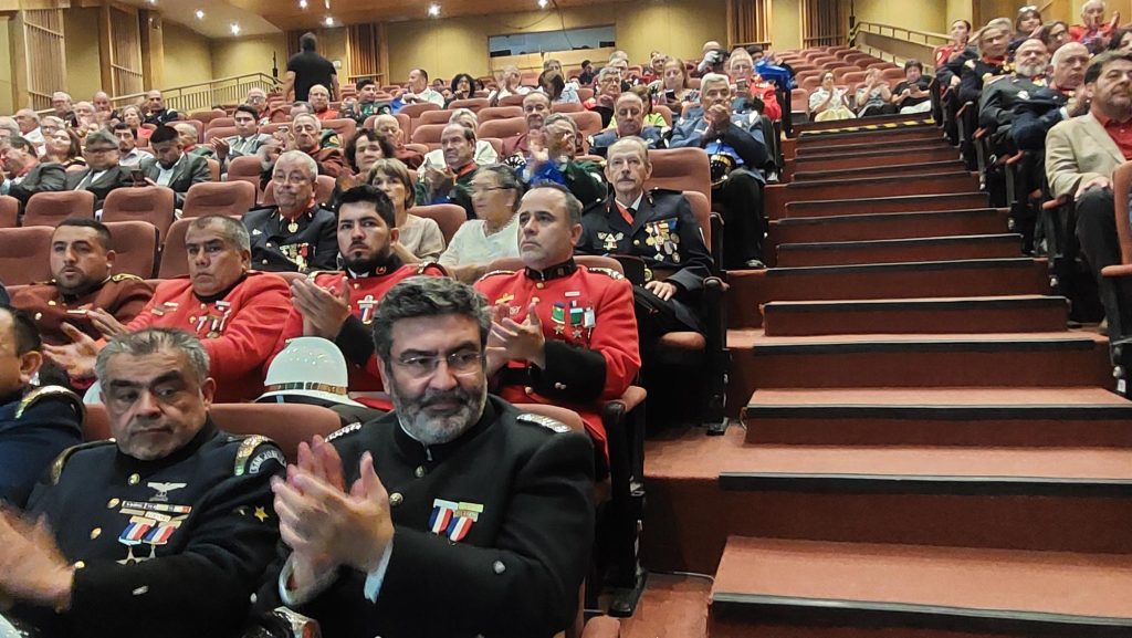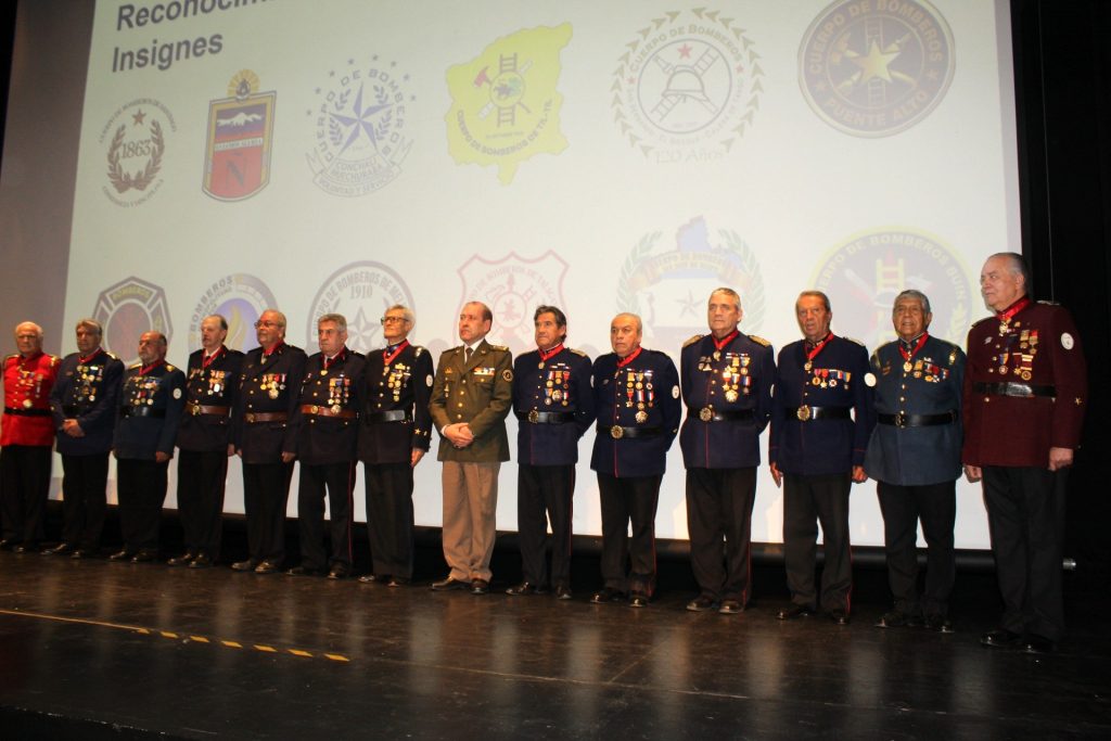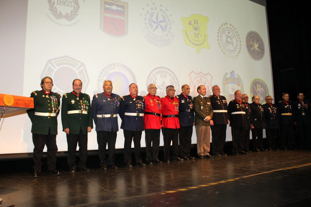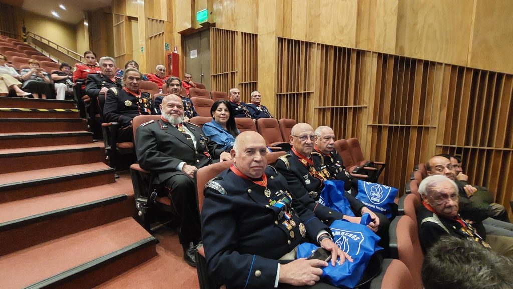 La ceremonia se realizó en el Centro Cultural de la Municipalidad de San Joaquín hasta donde llegaron 90 Voluntarios Honorarios con más de 50 años de servicios en los Cuerpos de Bomberos de la Región.