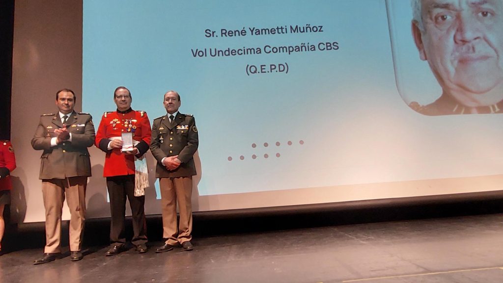 Igualmente, el Superintendente Gabriel Huerta recibió las distinciones de los Miembros Honorarios del CBS y Voluntarios Honorarios de la 11ª Compañía «Pompa Italia» René Yametti Muñoz y Aldo Yametti Muñoz (Q.E.P.D.).