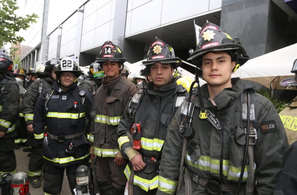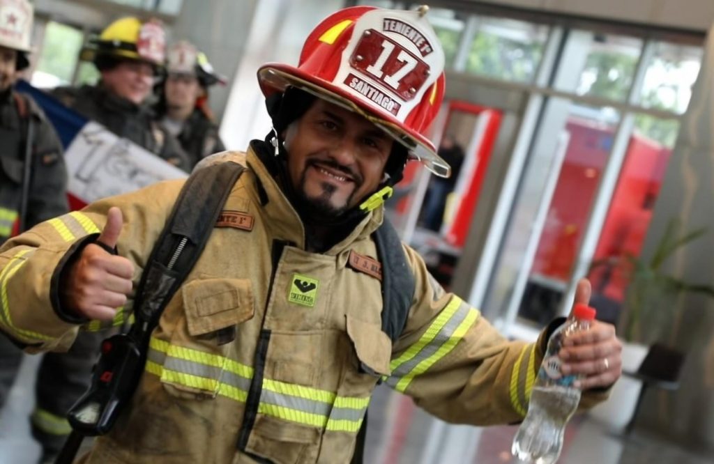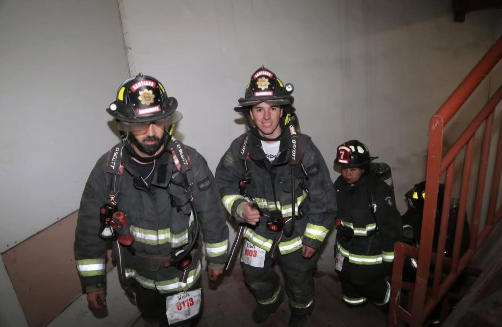 ● Ya suman 16 mil los bomberos que desde 2015 han subido los 62 pisos del Sky Costanera, el edificio más alto de Sudamérica.